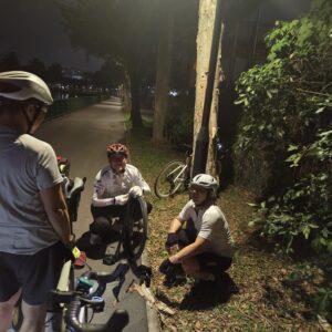 Afterwards, the group cycled back along the same route on the opposite side of the road. The expedition concluded with a satisfying supper at KNS Restaurant, where cyclists enjoyed prata, Maggie goreng, and a refreshing can of 100PLUS. During supper, one cyclist shared that this ride felt shorter and more enjoyable compared to the previous night rides at East Coast Park and Bishan last year. She also expressed her hope to see more new cyclists joining future expeditions.